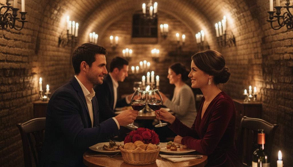 • Ambiente: Íntimo y singular. Está ubicado en unas antiguas cuevas abovedadas del siglo XVII en el Barrio de Las Letras. Las luces tenues y los pequeños rincones crean el ambiente perfecto para una conversación cercana.
