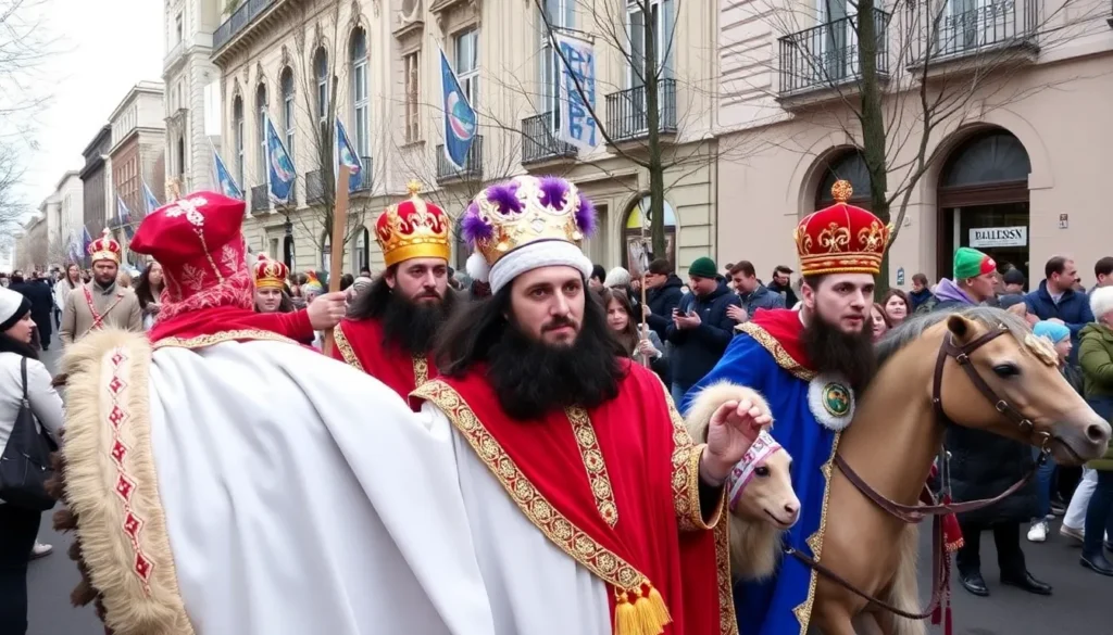 It is a parade that recreates the arrival of the Wise Men bringing gifts to baby Jesus, guided by a star.